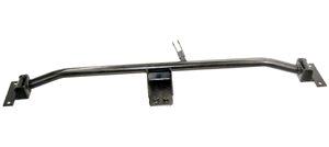 Our 1.5 O.D. heavy wall .188 thick D.O.M. tubing custom built cross member allows for the direct bolt of a Th-700R4, using the stock frame holes, brackets and bolts. The Th-700R4 is 3.13" longer than your typical short tail housing Th-350 and 2.50 longer than a typical short tail housing Th-400. The drive shaft will need to be shortened by this amount, which positions the U joint further towards the rear of the car. This new U joint position interferes with the emergency brake cable. Incorporated into our design is a bracket to reposition the emergency brake cable so it will clear the newly positioned U joint. Just remove the nylon guide wheel from the old cross member, using the same hardware, install it onto the new cross member. We designed very high arches into the cross member tube for maximum clearance for custom exhaust. In fact, our cross member is higher the foot wells in the floor pan of the body, which will allow maximum clearance for exhaust tubing. Since they no longer have to route through the cross member, very large diameter exhaust tubes can be used. Crossmembers come in RAW STEEL