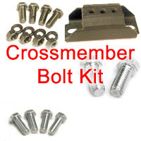 Complete Hardware kit Includes: X-member Bolts grade 8 3/8 16 bolt, nut and lock washer and 7/16 mount bolt with 7/16 washer. Standard Rubber Trans Mount. (4) 3/8-16 Bolts, (4) 3/8-16 Nuts, (4) 3/8 washers, (2) 7/16 Bolts and (2) 7/16 washers.