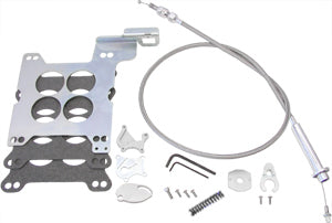 Will fit the Edelbrock 1406 Performer series and the 1805 Thunder series carbs. Optional throttle cable bracket available for $15.00. This bracket is not included with the kit it must be ordered separately. For more information, click here